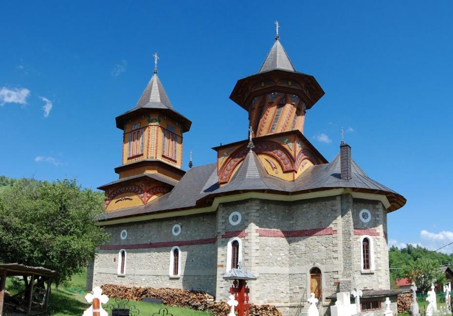 Bolţile şi cele două turnuri sunt din lemn, fiind construite de Nicolae (Nicu) Maxim din satul Dreptu.